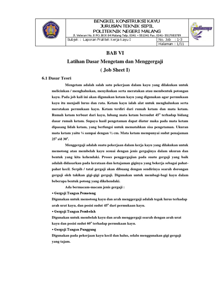 Kami akan menghapus komentar yang bertentangan. Kesehatan ri pangkalpinang tahun 2018. Laporan praktek bengkel kerja kayu,program study manajemen rekayasa konstruksi politeknik negeri malang. So please help us by uploading 1 new document or like us to download Bab iii uraian kerja pada bab ini berisikan tentang pelaksaan dari praktek kerja kayu 2.